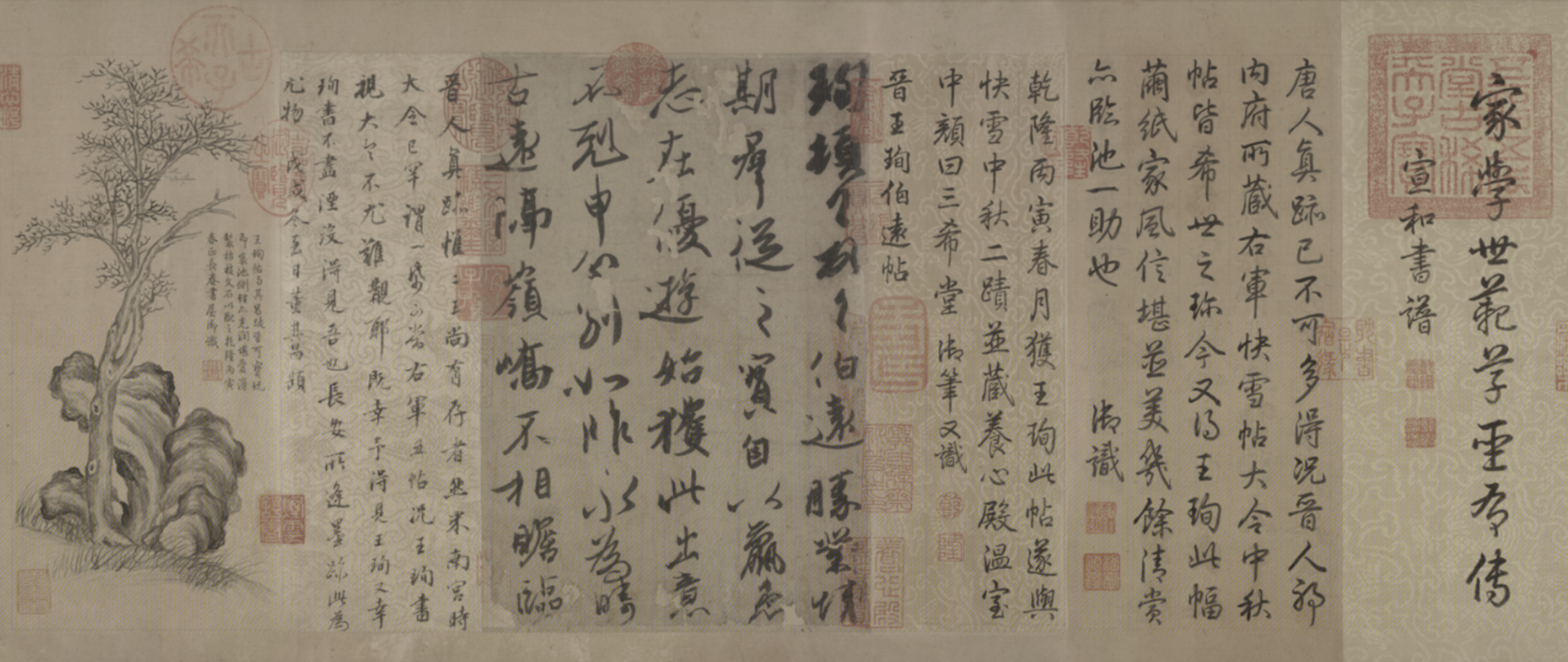 - 视为传世摹本中最接近王羲之原迹之作。卷后有宋至明20家题跋及180余方鉴藏印,历经南宋内府、元代郭天锡、明代项元汴、清代乾隆内府等收藏,并刻入“兰亭八柱”第三柱