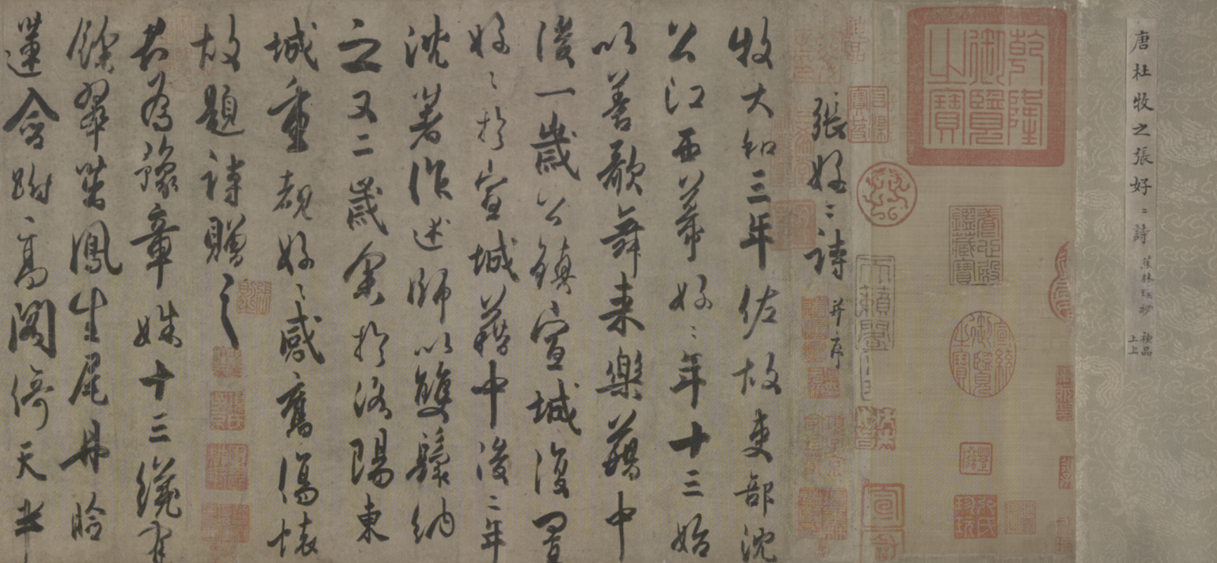 - 杜牧仅存的书诗墨迹,也是杜牧自撰诗歌并书的艺术作品。全篇书法笔势放纵,风格雄健,转折处有孙过庭《书谱》之神韵,很有魏、晋书法的古朴风度