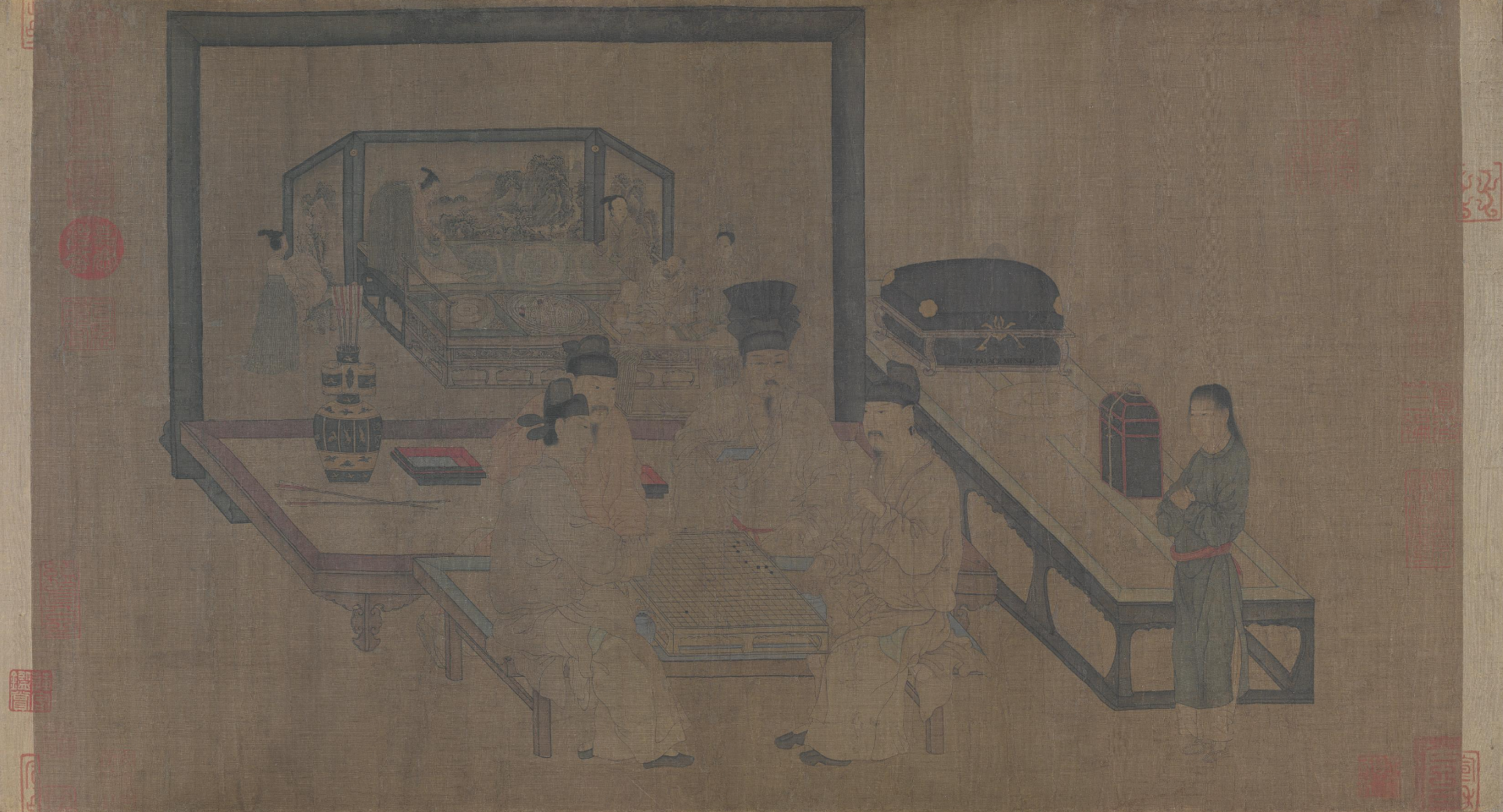 - 五代时期画家周文矩创作的一幅绢本设色画(原本已经失佚,现存摹本)