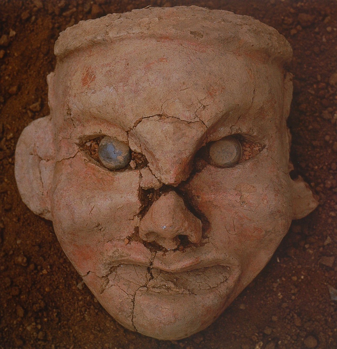 - 1984年出土于辽宁省牛河梁遗址女神庙,红山文化晚期(约5500年前)泥塑女性头像