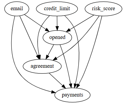 - 不合理的思路:将客户点击(opened)和客户同意(agreement)作为补充特征,纳入模型;中介特征是指在因果图中处于干预到结果之间的路径中的特征节点,将其纳入模型会导致选择偏差
